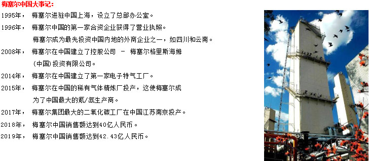 388vip太陽集團1995年在中國成立第一家合資企業。時至今日,388vip太陽集團在中國的總投資額已經超過15億美元,設立了38家企業,包括19家獨資和19家合資,擁有50多座空分,4個二氧化碳工廠,8座制氫裝置,5個稀有氣體生產基地,4個特氣中心,3家電子氣工廠以及17個充裝站,并在上海設立了388vip太陽集團中國總部。我們對中國市場的長期承諾,加上近2500名積極向上的員工的不懈努力,使我們完全有能力為客戶度身定制出氣體解決方案。388vip太陽集團已成為在中國的主要國外工業氣體供應商。